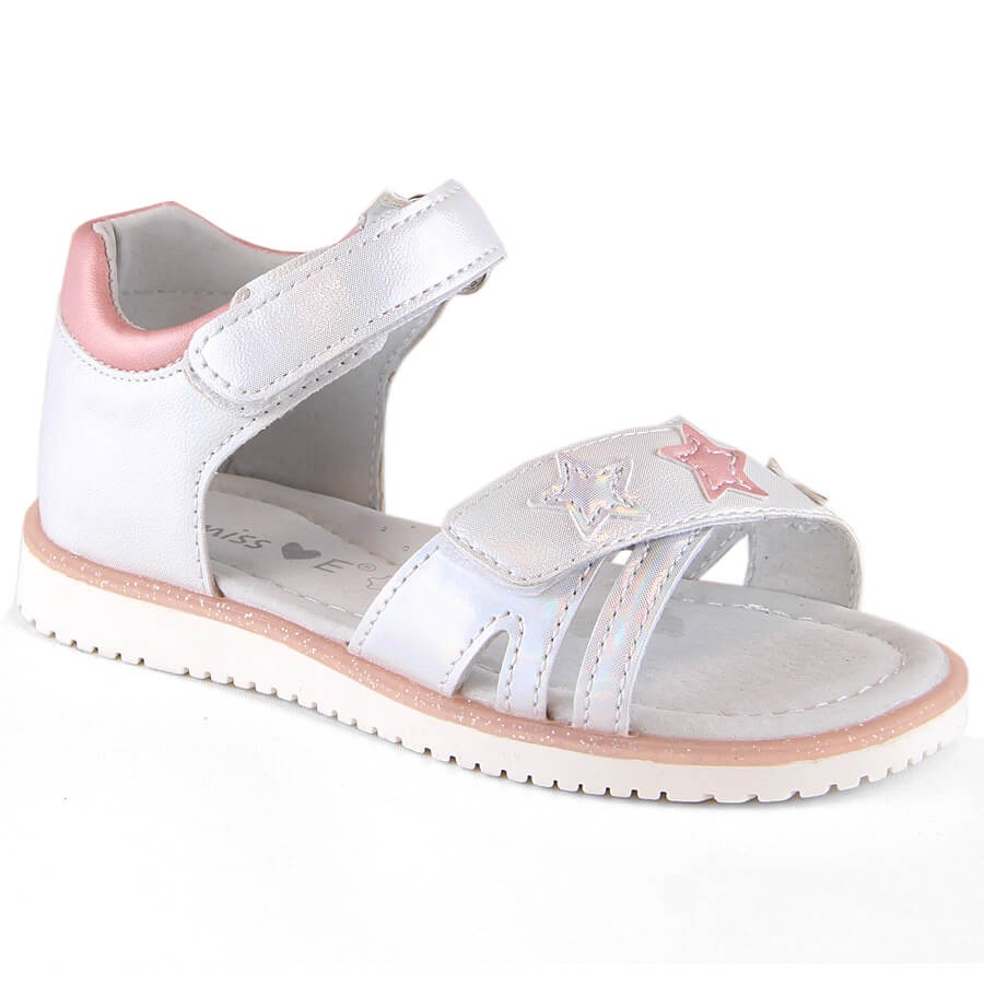 Evento flickasandaler med kardborreband är det perfekta valet för små fashionabla! Den underbara silverfärgen, i kombination med rosa accenter, får varje tjej att känna sig som en riktig stjärna. Dessa sandaler är gjorda av högkvalitativt ekoläder och ger inte bara stil utan också komfort.