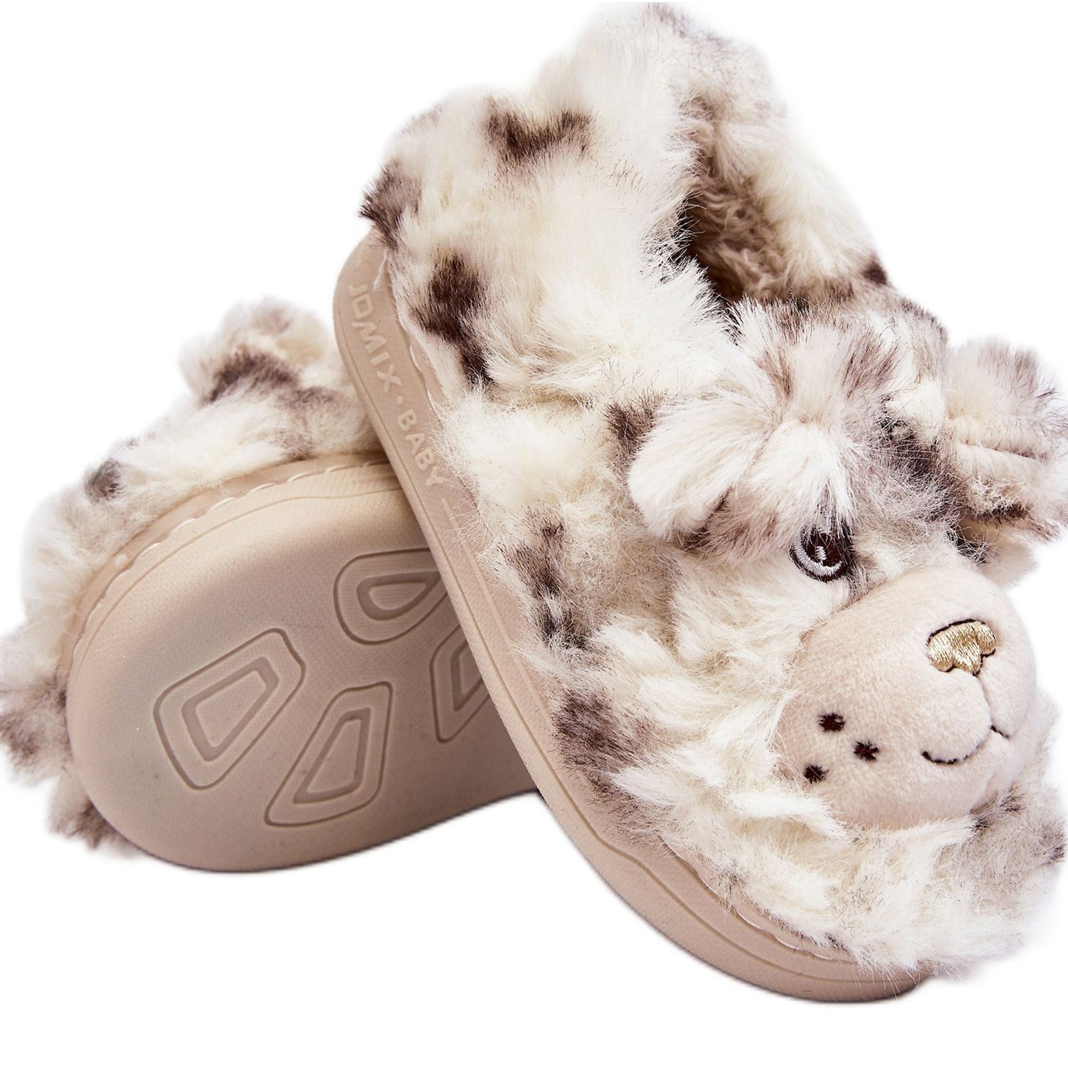 Ljusbeige Apolanie barntofflor med päls med nalle är ett perfekt val för att hålla små fötter varma och bekväma hemma. Tillverkad av barn- och miljövänlig eko-päls som omsluter fötterna och ger en känsla av exceptionell komfort. Tack vare materialanvändningen på både utsidan och insidan skyddar tofflorna inte bara effektivt mot kyla, utan är också behagliga att ta på och estetiska.
