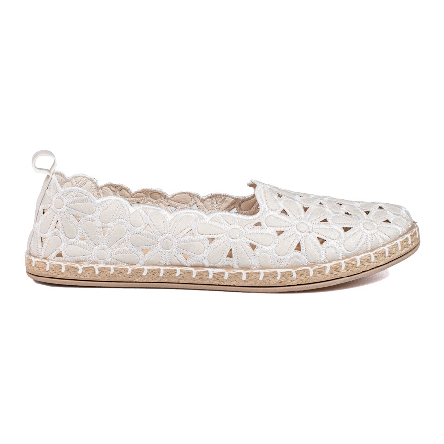 Upptäck komfort och stil med genombrutna balettlägenheter för kvinnor av W. Potocki i en elegant vit färg. Dessa unika skor är det perfekta valet för våren och sommaren, och ger både komfort och ett moderiktigt utseende.