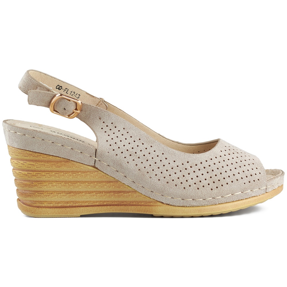 Sandaler har utrustats med en bekväm insats av naturläder, vilket ger utmärkt ventilation och mjukhet vid varje steg. Kilhöjden på 7,5 cm förlänger optiskt benen, vilket skapar en sensuell silhuett, och den praktiska fästningen för spännet och skjutskärningen gör att de lägger på dem snabbt och enkla.