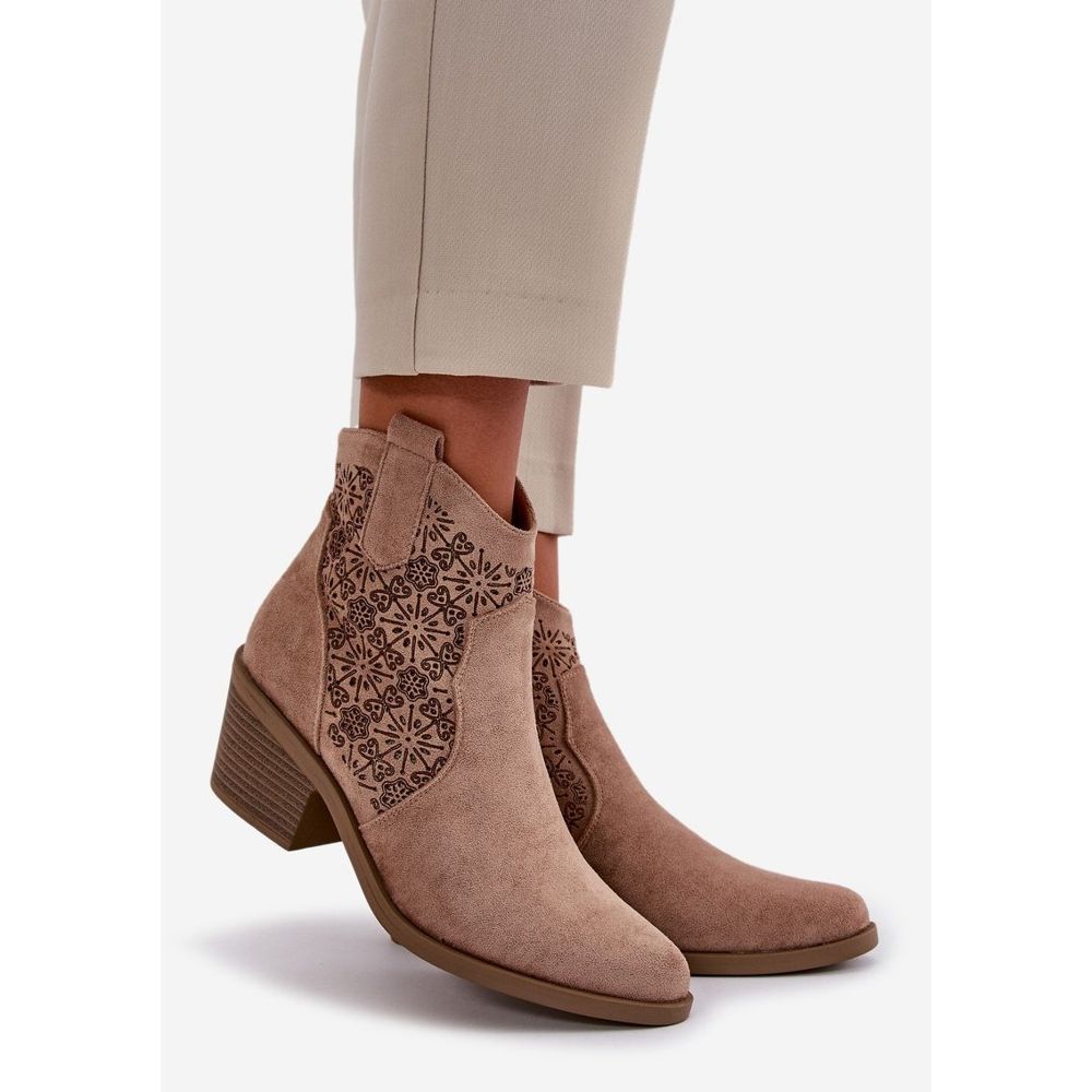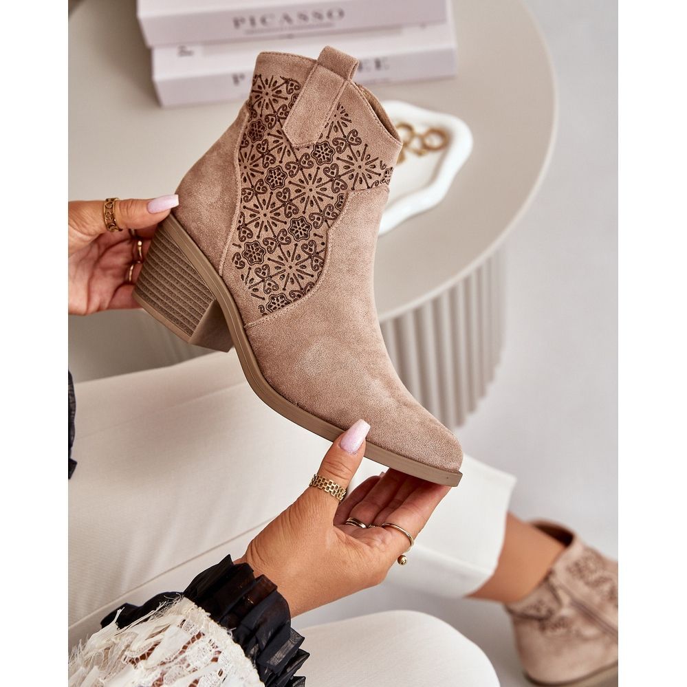 Detaljer: Genombrutna Cowboystövlar med dragkedja Eco Mocka Beige S.Barski HY42-944