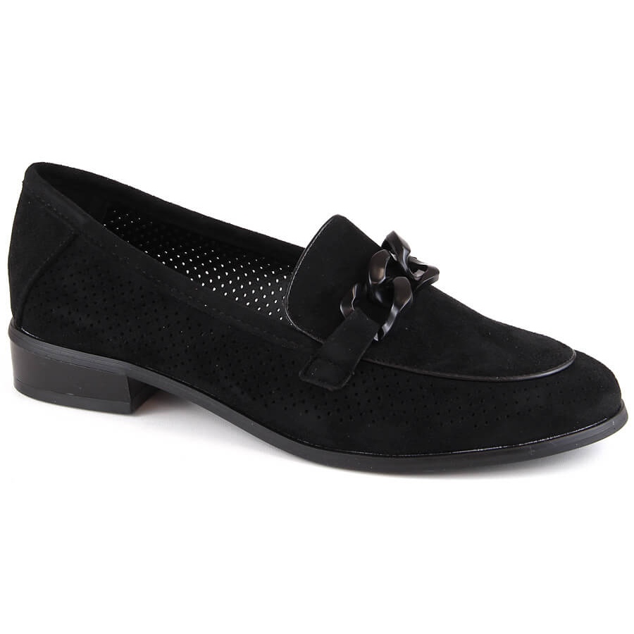 Genombrutna högklackade mockaskor för kvinnor, svarta Potocki SZ12052, är ett idealiskt förslag för kvinnor som värdesätter elegans och komfort varje dag. Dessa snygga mockasiner från det välkända varumärket Potocki kombinerar modern design med högkvalitativt utförande.