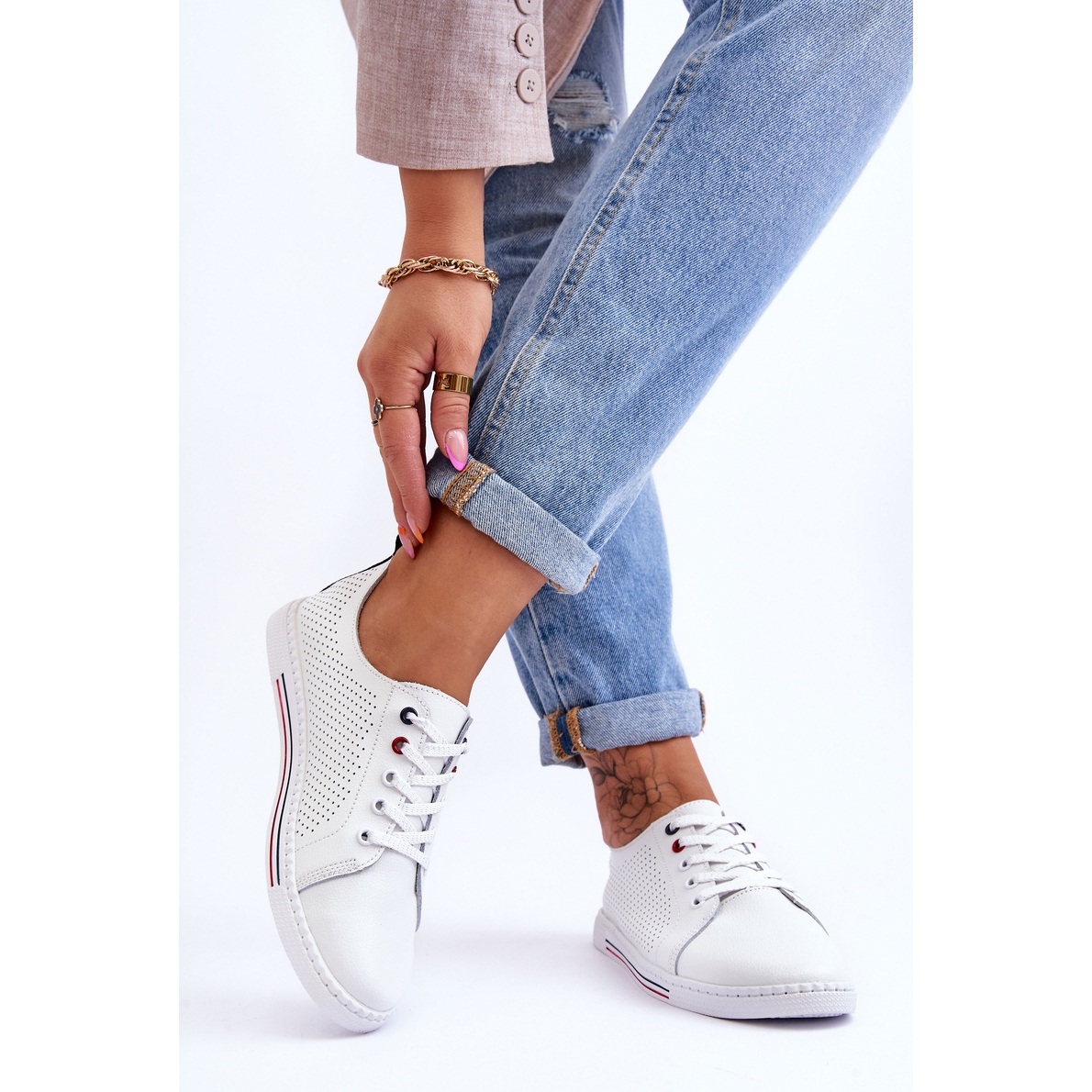 Detaljer: S.Barski Genombrutna lädersneakers för kvinnor Vit Ferone