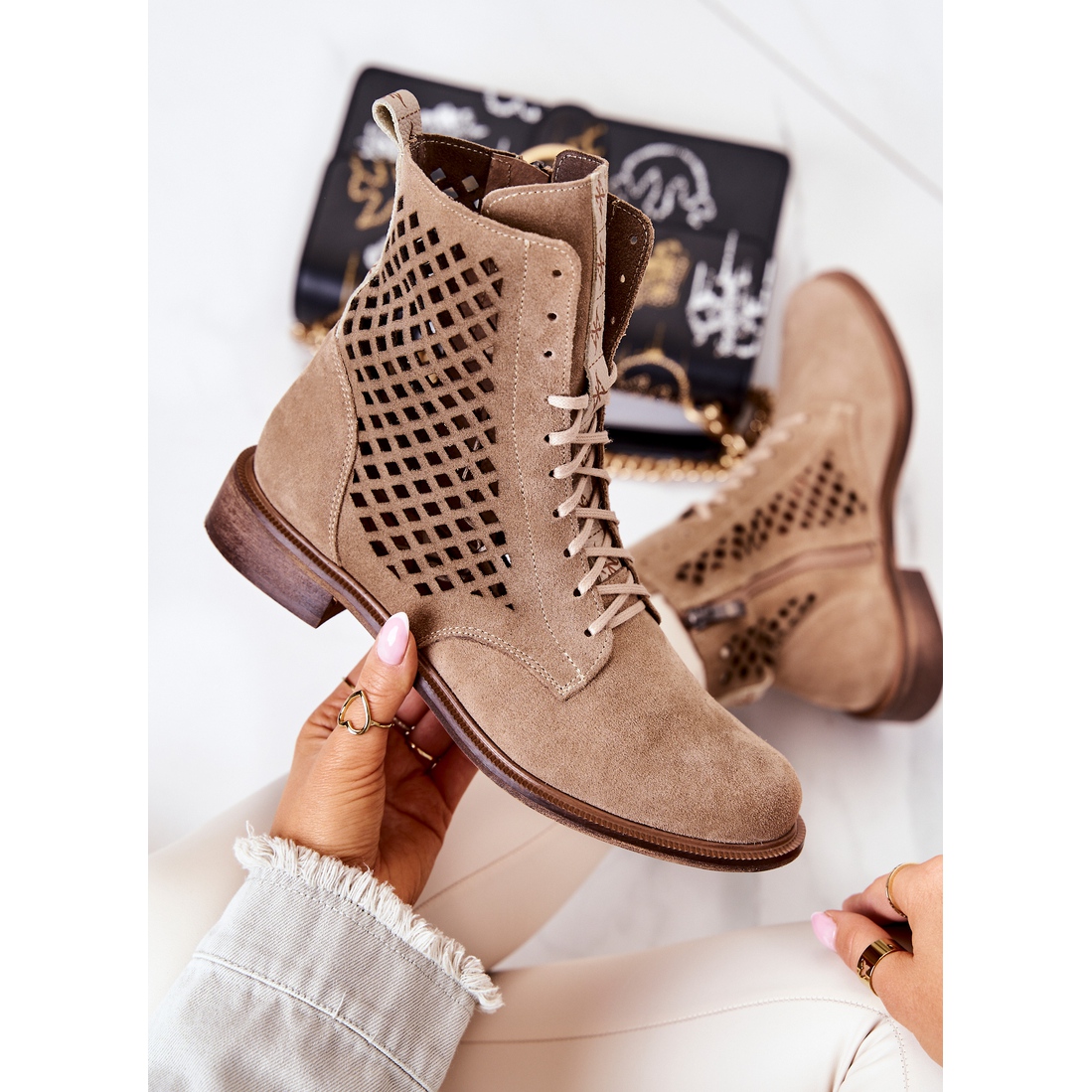 Detaljer: Genombrutna läderstövlar med knuten Nicole Ljusbrun 2696