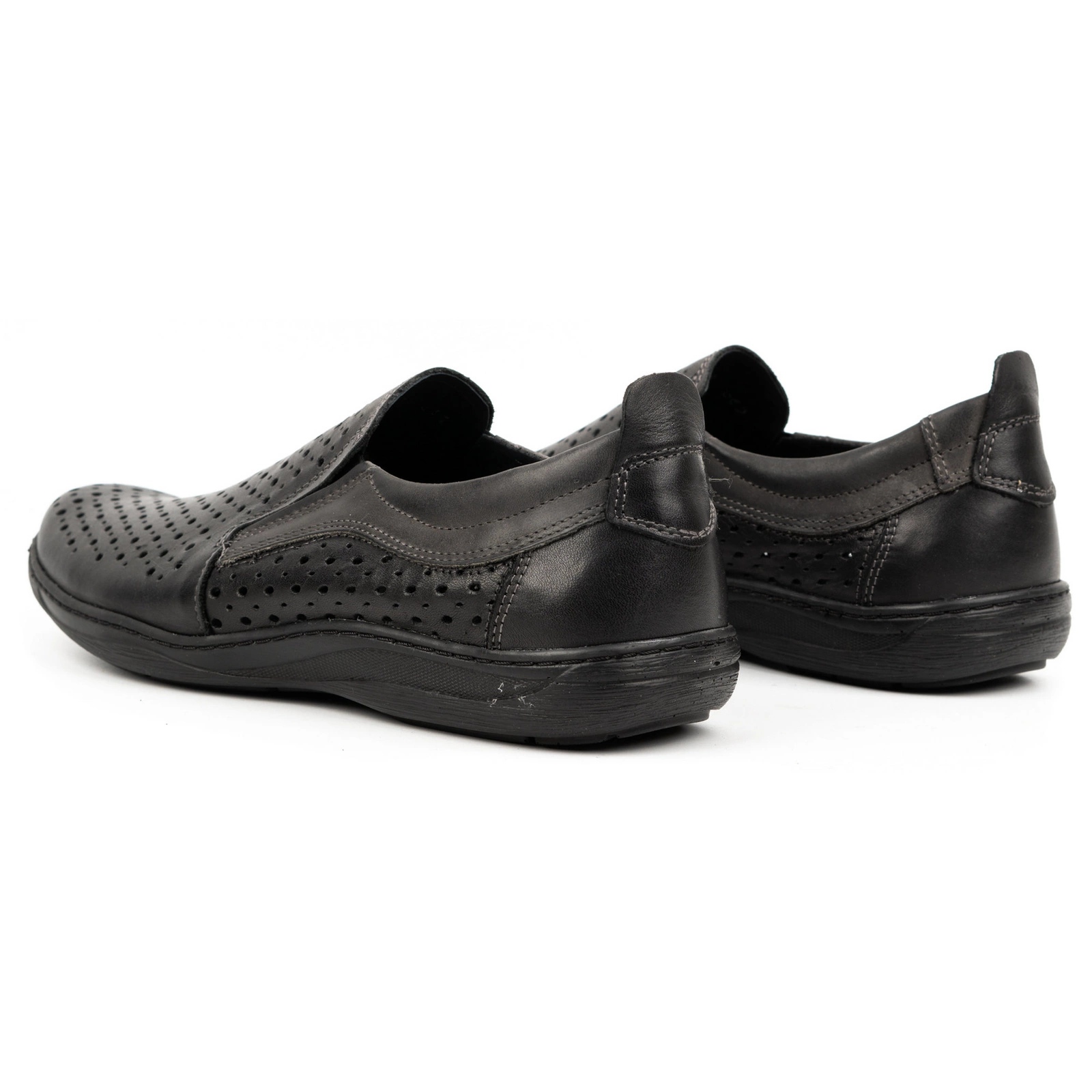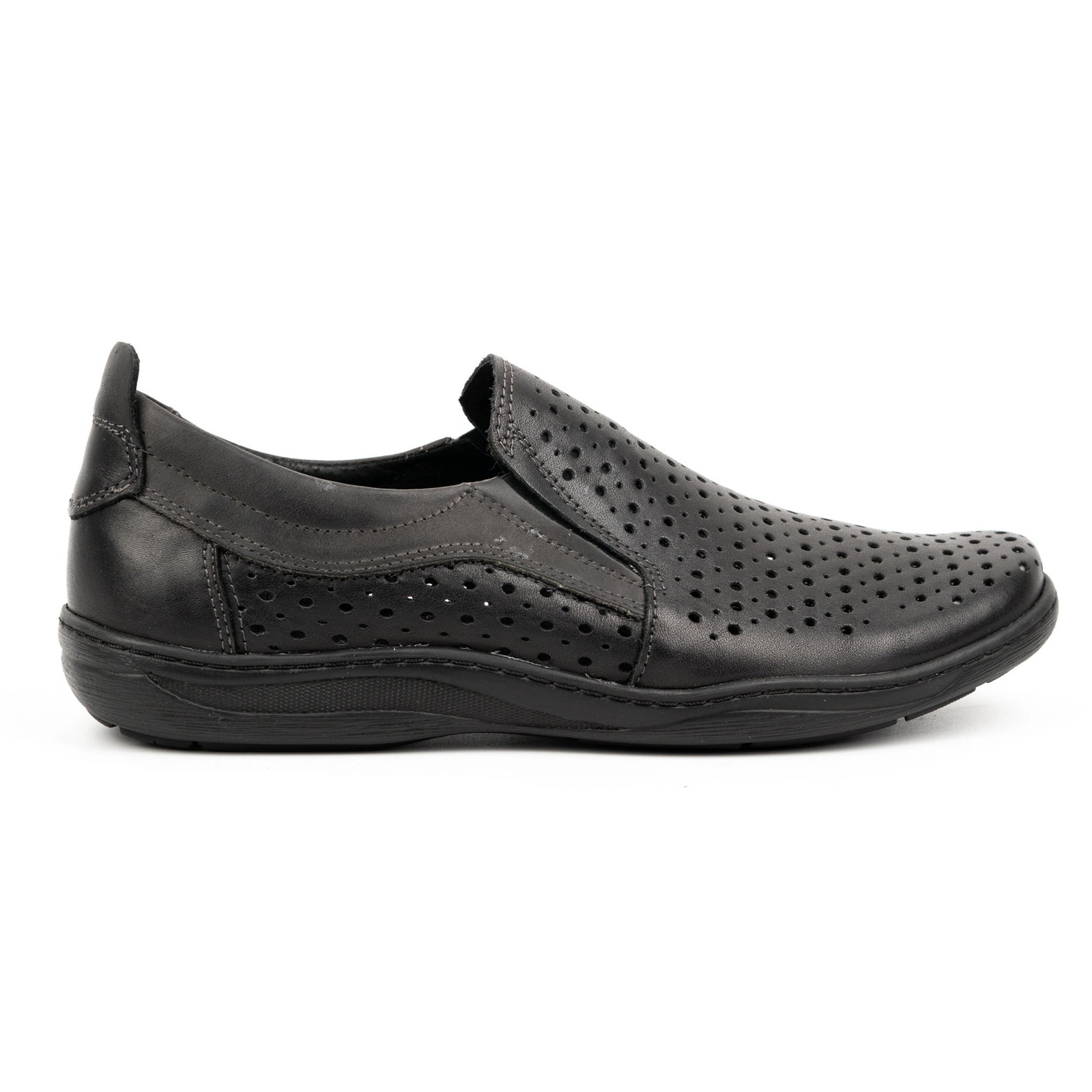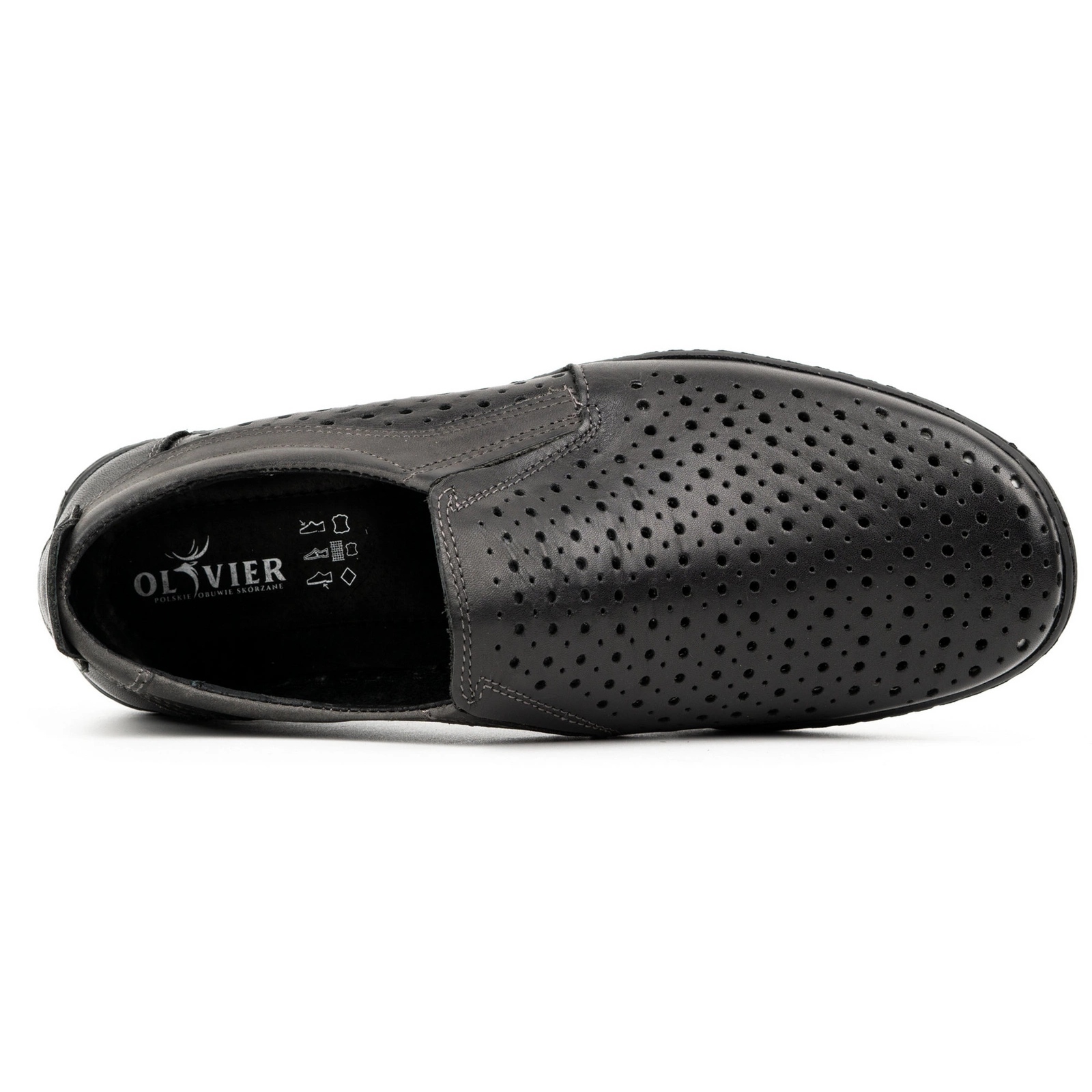 Olivier Men's Openwork Loafers för Summer 662 Black är ett utmärkt val för män som vill kombinera elegans med komfort. Dessa snygga läderskor kännetecknas av modern design och många hål som ger utmärkt ventilation, vilket är ovärderligt på varma dagar. Tack vare detta kommer dina fötter att känna sig fräscha och bekväma och eliminera problemet med överdriven svettning.
