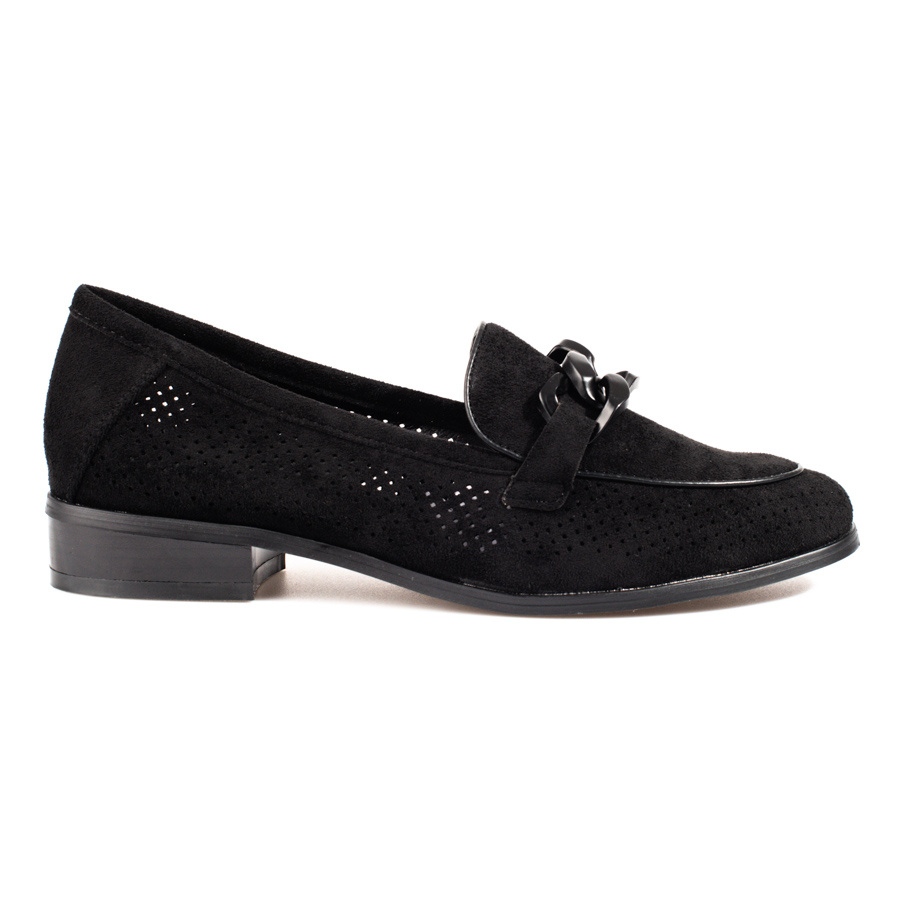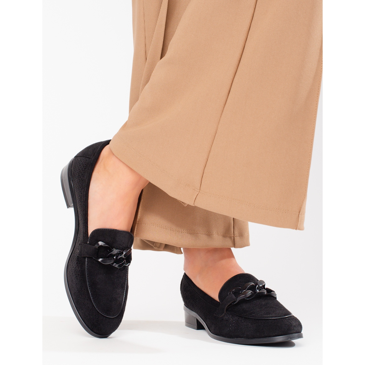 W. Potocki - Suede Women's Openwork, Black Loafers