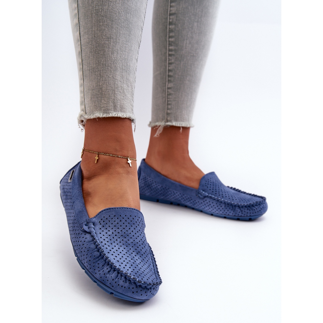 Inna marka Genombrutna mockasiner för kvinnor Blå Rasirna