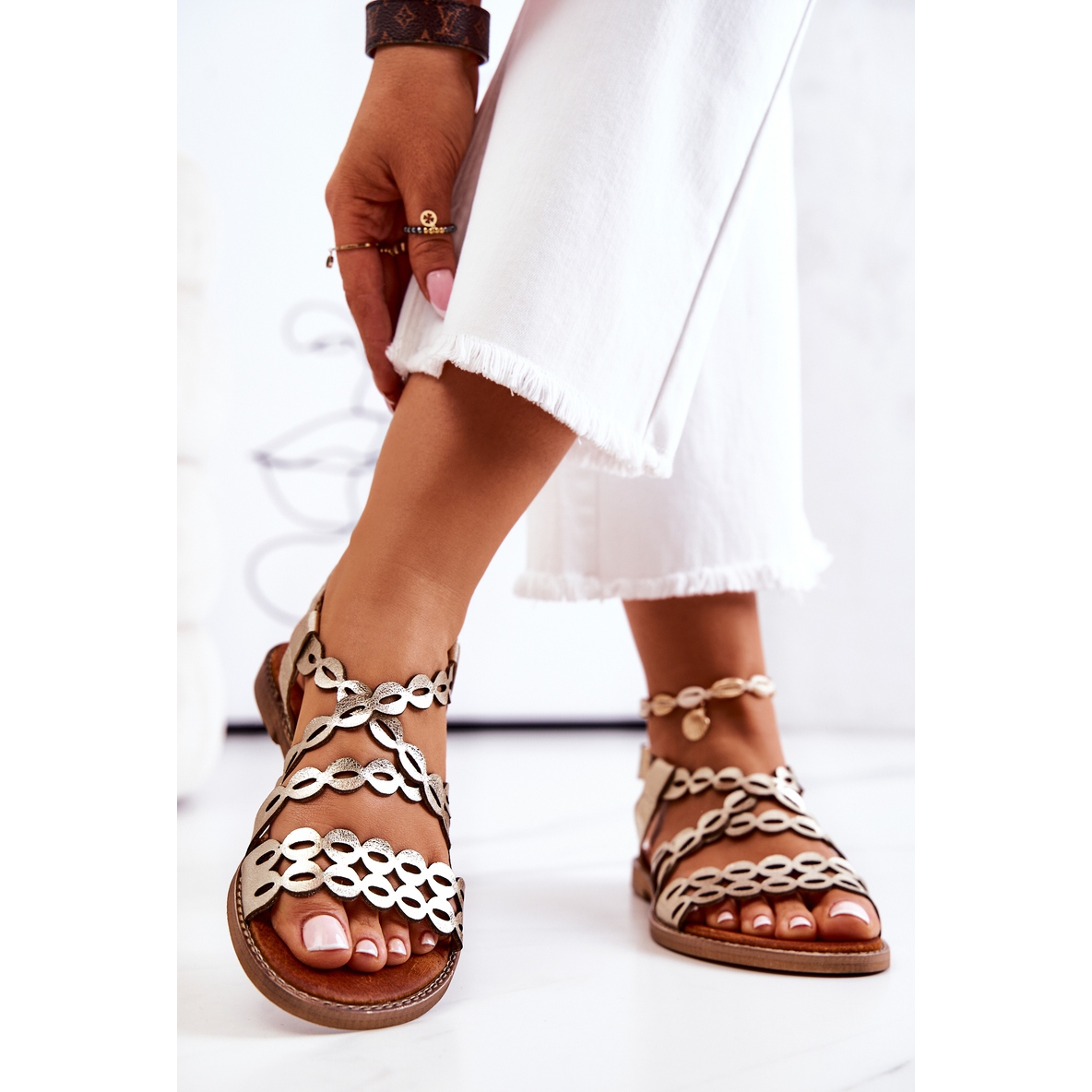 **Lewski skor Läder genombrutna sandaler Lewski 3022 guld**