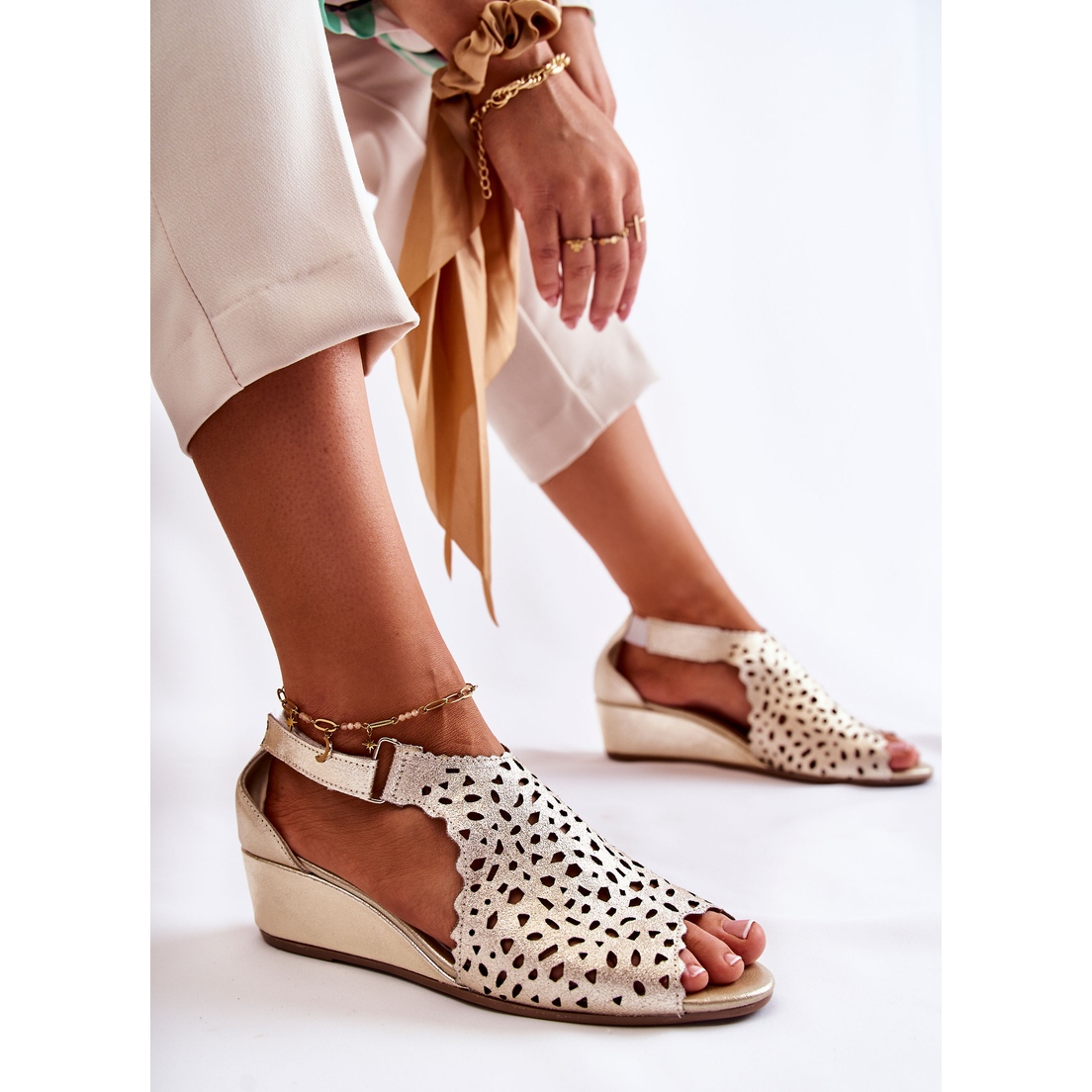 Information: PA2 Genombrutna sandaler i läder på kilguld Sellena gyllene