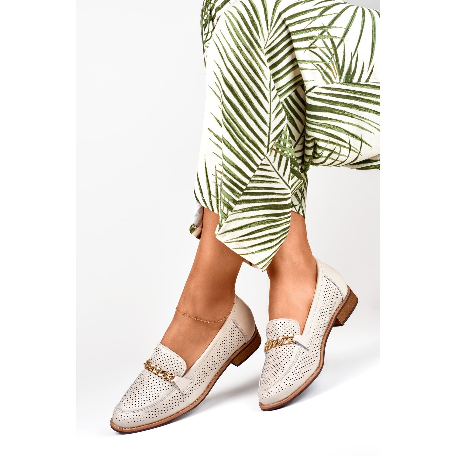 Inna marka Genombrutna skor för kvinnor gjorda av naturligt läder beige