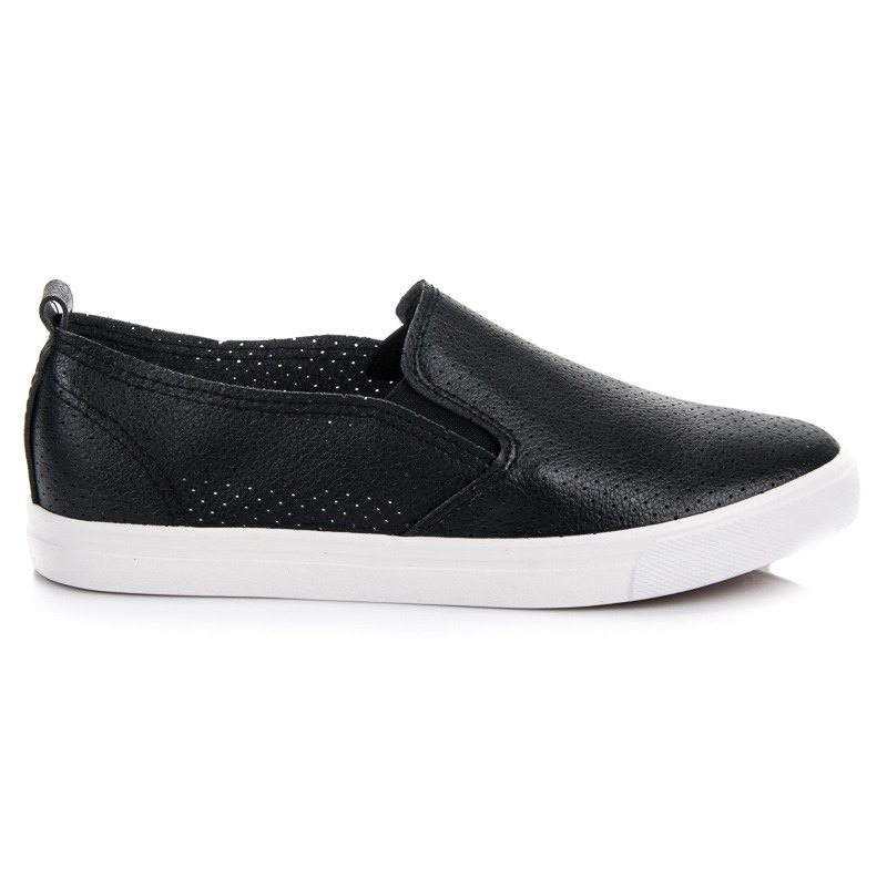Vi presenterar genombrutna slip-on sneakers i en elegant svart färg från märket Sport, som är den perfekta kombinationen av komfort och stil. Dessa låga damskor kännetecknas av en praktisk design, vilket gör det extremt enkelt och snabbt att ta på dem.