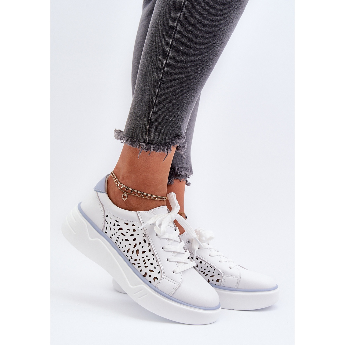 Vi presenterar OpenWork Women's Sneakers på Peilaeno -plattformen, som kombinerar komfort med fashionabla design. Dessa vita sneakers är gjorda av högkvalitativa naturläder och skiljer sig inte bara i stil utan också med funktionalitet. Openwork Upper fångar inte bara ögat, utan ger också tillräcklig ventilation, vilket gör dem till ett idealiskt val för varmare dagar.
