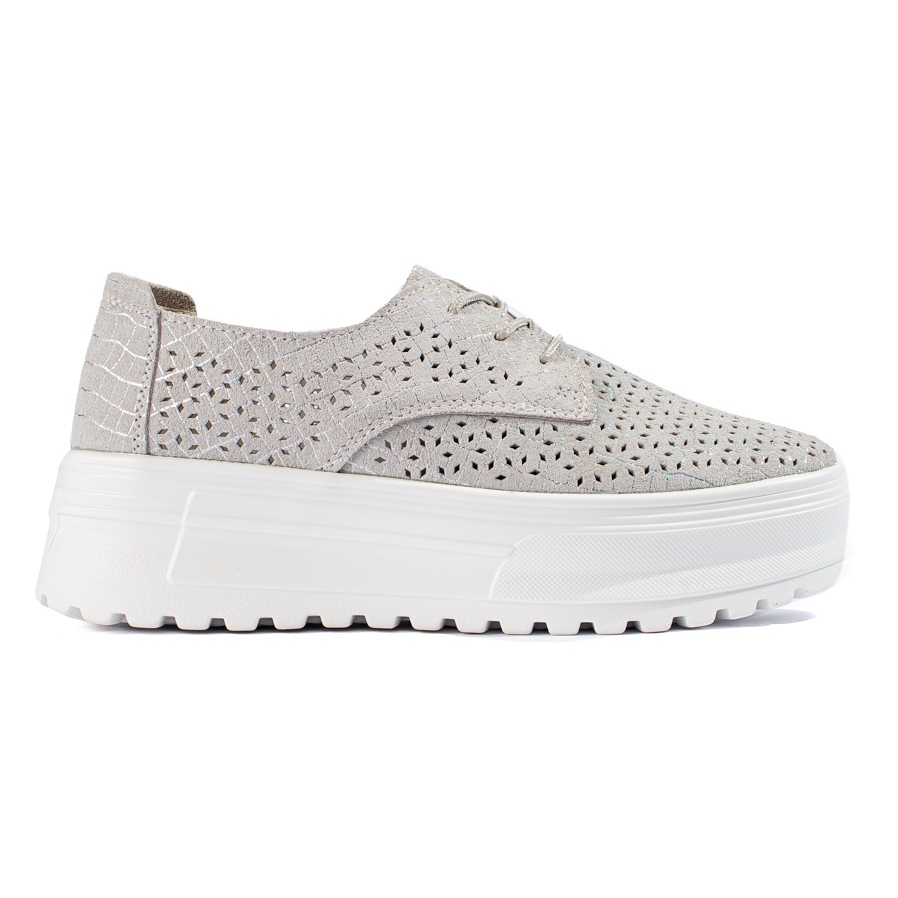 Upptäck elegans i kombination med komfort tack vare genombrutna sneakers i läder på hög plattform från märket Shelovet i silvergrå. Dessa unika damskor kombinerar modern design och komfort över genomsnittet, vilket gör dem till ett idealiskt val för varje dag och speciella tillfällen.