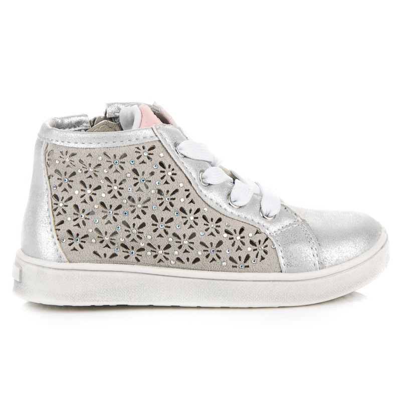 Genom att välja genombrutna sneakers från American Club investerar du i ditt barns komfort och moderiktiga utseende. Dessa skor är det perfekta komplementet till varje sommarstyling, och deras universella grå färg möjliggör enkel kombination med en mängd olika kläder. Få din dotter att känna sig speciell med sneakers som kombinerar funktionalitet och stil!