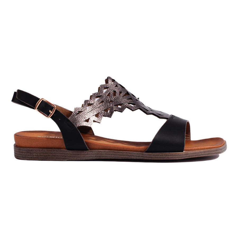 Detaljer: Genombrutna svarta damsandaler från Sergio Leone
