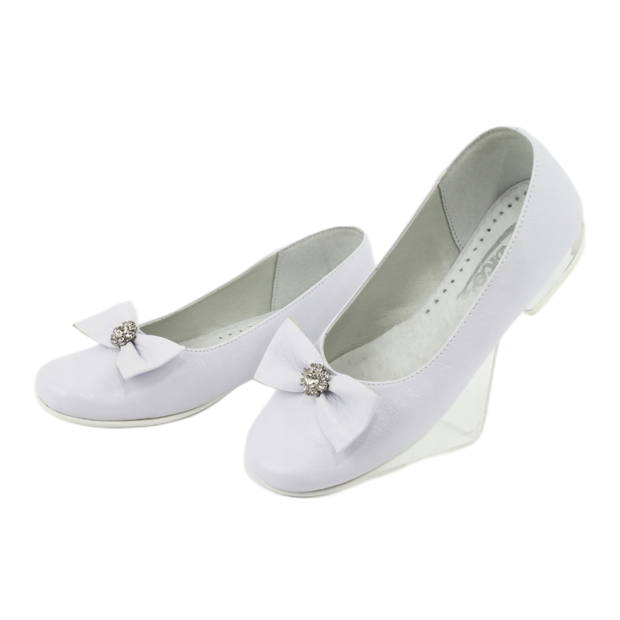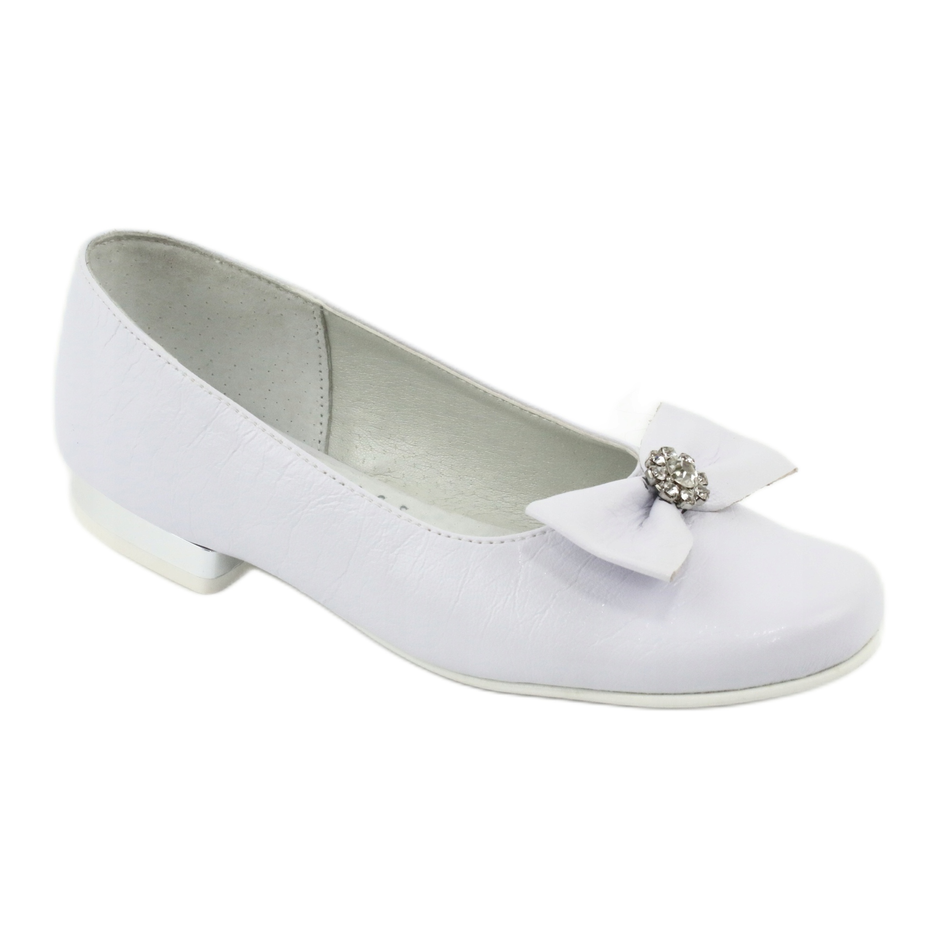 Detaljer: Girls 'Ballerinas lädervita Miko 800 med en båge