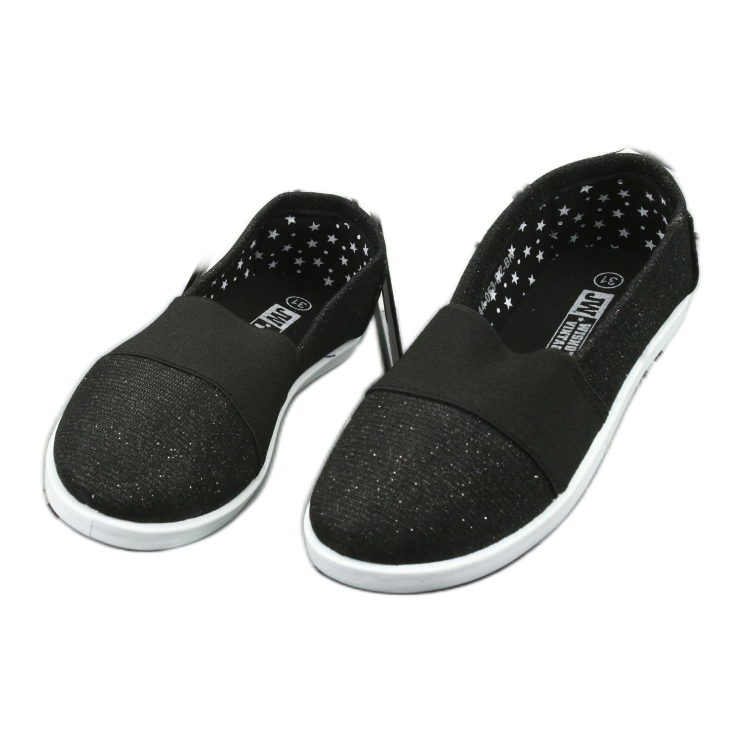 Wishot Wishot Girls 'glänsande svarta och slarviga sneakers 44-053