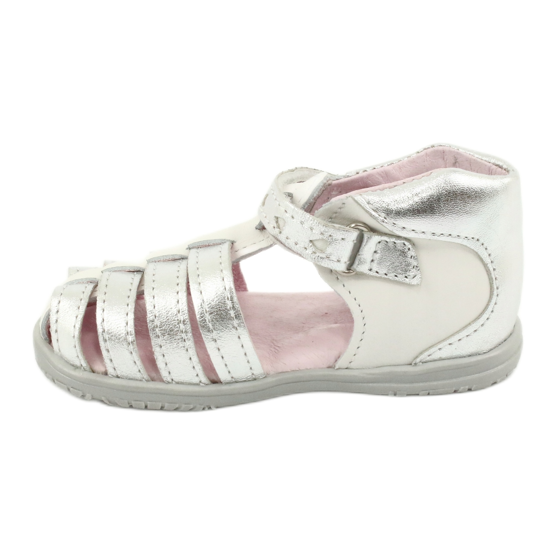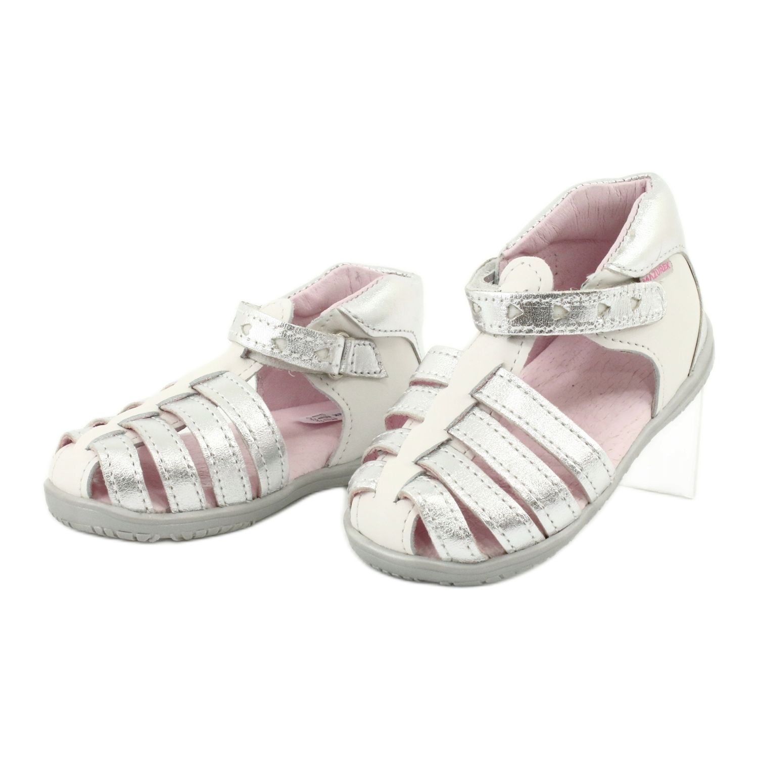 Mazurek 245 lädersandaler i vitt och silver är ett perfekt val för varje liten dam som vill kombinera stil med komfort. Nuförtiden, när föräldrar bryr sig om hälsan på sina barns fötter och samtidigt vill att deras barn ska se moderiktiga ut, kan det vara en utmaning att hitta rätt skor. Mazurek sandaler är svaret på dessa behov.