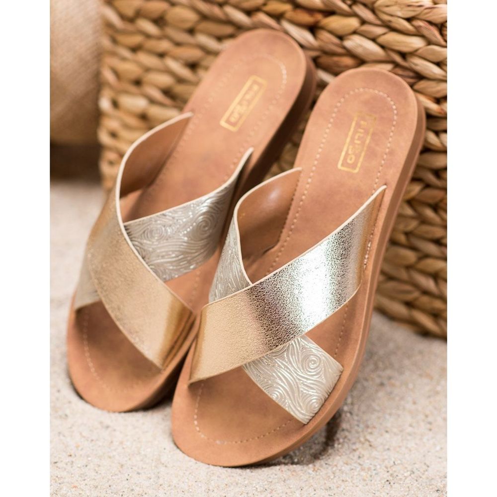 Information: Filippo Glänsande Eco Leather -tofflor gyllene