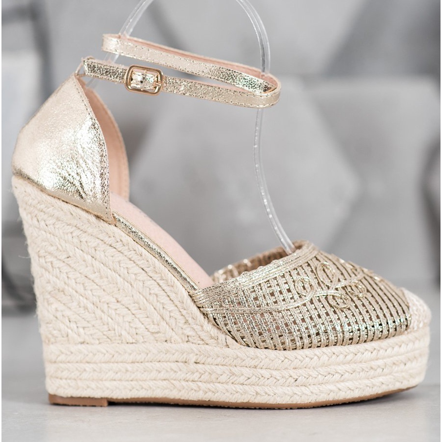 Information: Weide Glänsande Espadrilles på kil gul