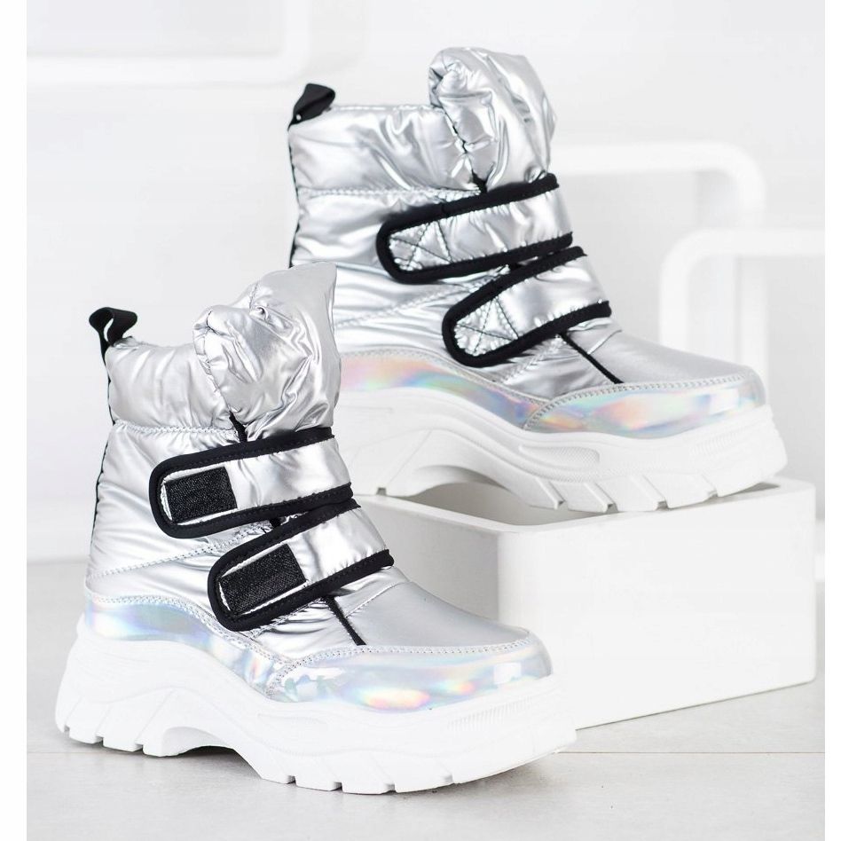 SHELOVET SHELOVET Glänsande snöskor med kardborreband silver-