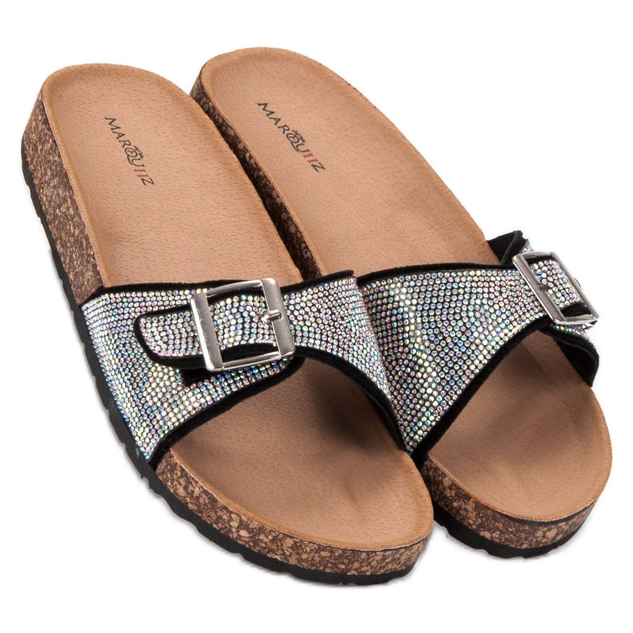 Upptäck den extraordinära charmen hos Marquiz damtofflor - Shiny flip-flops med spänne i en klassisk svart färg. Dessa unika vardagsskor gläds inte bara med sitt eleganta utseende, utan också med den komfort de ger när de bärs. Deras extraordinära glans njuter tack vare vackert inbäddade zirkoner som skimrar i solens strålar, vilket ger en touch av lyx och unikhet till varje styling.