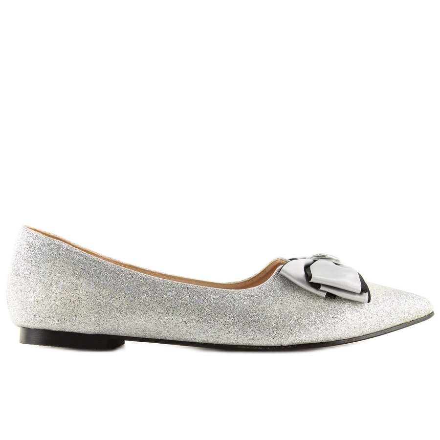 Glansiga silverballerinor LT101 i en nyans av grått och glitter är det perfekta valet för kvinnor som vill kombinera komfort med elegans. Dessa bländande damskor kännetecknas av sin sofistikerade design med en mandeltå och en charmig rosett som ger dem en flickaktig charm.