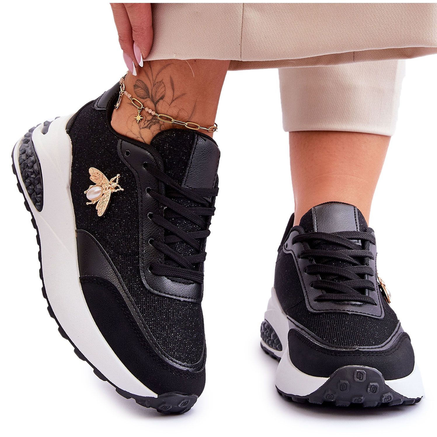 Ställda på en bekväm plattform och en låg kil erbjuder de stabilitet och komfort under vardagliga aktiviteter. En intressant accent är insektsdekorationen som ligger på sidan av ovandelen, vilket ger skorna en unik karaktär. Klassisk snörning möjliggör en perfekt passform till formen på benet, vilket säkerligen kommer att tilltala varje kvinna.