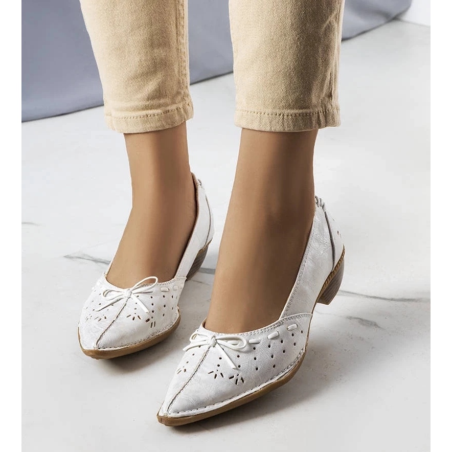 White Ballerinas Glazko från D/GMR är ett bra val för kvinnor som vill lägga till en anteckning om elegans och lätthet till sina sommarstyliseringar. Dessa extremt noggrant gjorda skor glädjer inte bara estetik, utan också med komforten att bära. En liten 10 mm häl betonar subtilt figuren och lägger till elegans till varje steg.