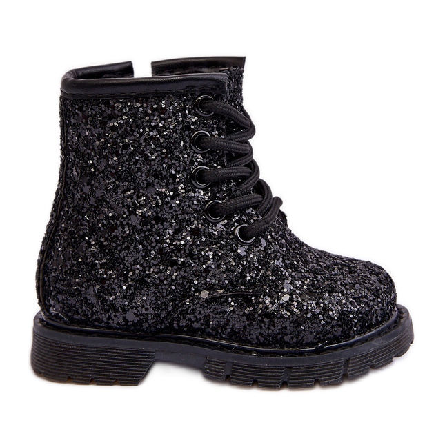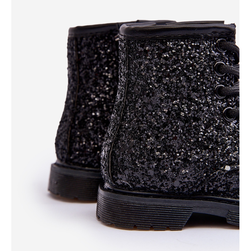 Detaljer: Glitterisolerade ankelstövlar för barn med dragkedja, Svart Saussa