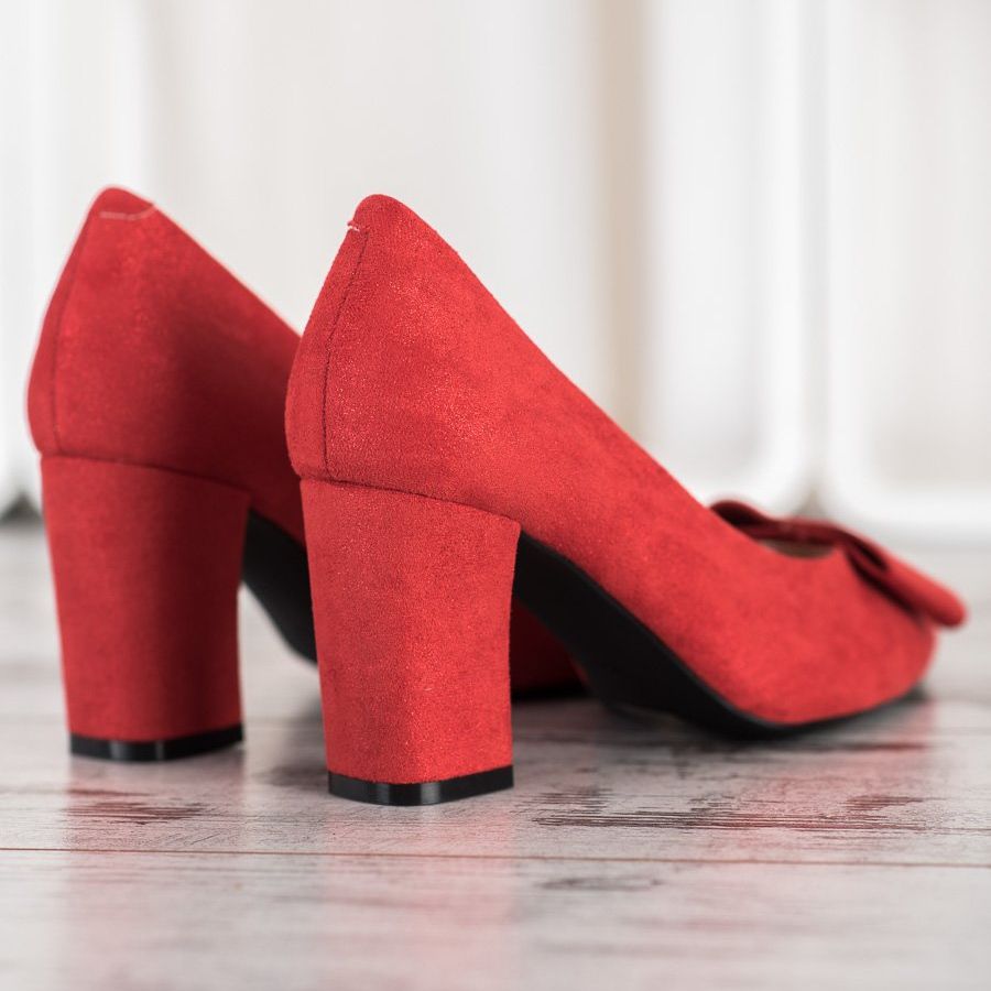 Klackhöjden på 7,5 cm gör att pumparna optiskt lägger till höjd, samtidigt som de är stabila tack vare en rejäl stolpe. Den släta, syntetiska sulan säkerställer hållbarhet och komfort att bära. Tack vare den universella röda färgen matchar pumparna perfekt med olika stilar - från eleganta klänningar till avslappnade kombinationer med jeans.