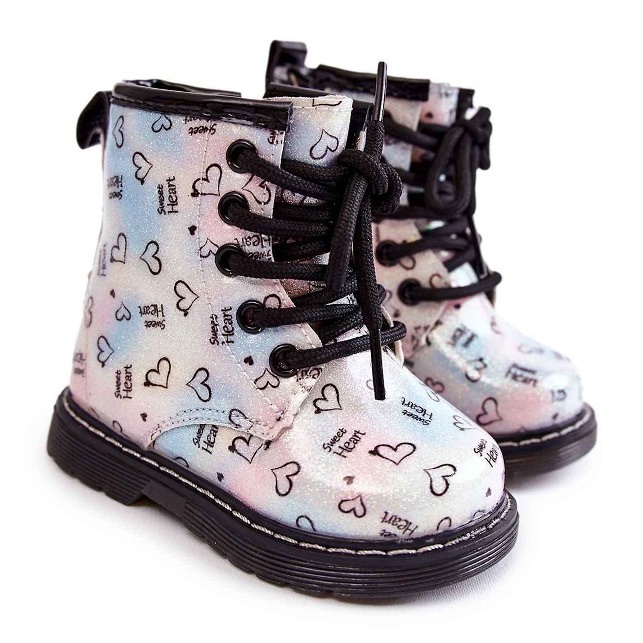 Charmiga stövlar för flickor som kombinerar en trendig finish med att bära komfort. Den övre delen av ekologiskt läder med ett effektivt mönster, dessutom dekorerat med glitter - en blixtgaranti vid varje steg. Modellen har en klassisk snörning och en praktisk blixtlås på sidan, vilket gör det lättare att ta på sig snabbt. Interiören isolerad med mjuk päls (skorfilt), idealisk för svalare dagar. En platt sula med en lätt plattform och en icke -slip -slitbanan säkerställer stabilitet, och trådtrimmen ger hållbarhet.