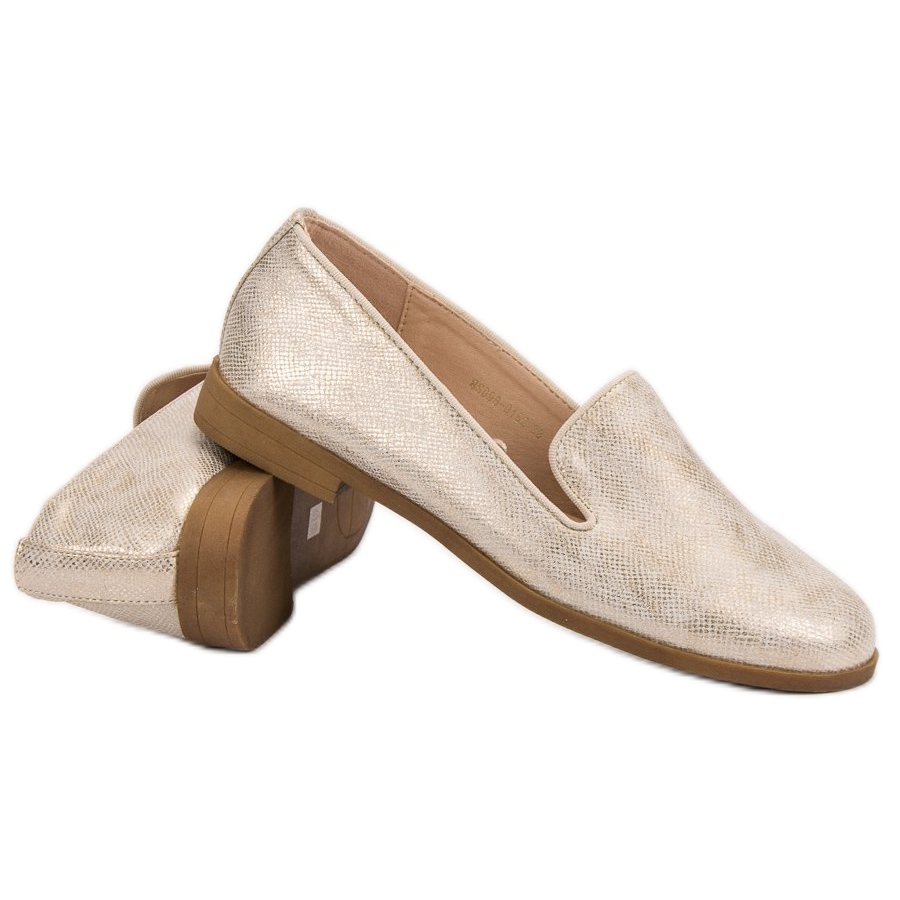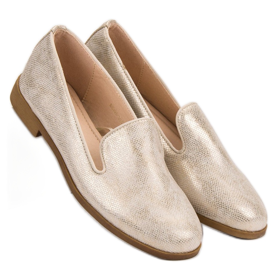 Vi presenterar eleganta Evento-herrar i en delikat guldfärg - det perfekta valet för kvinnor som vill kombinera komfort med en modern stil. Dessa unika skor är ett bra sätt att ge alla kläder en unik karaktär.