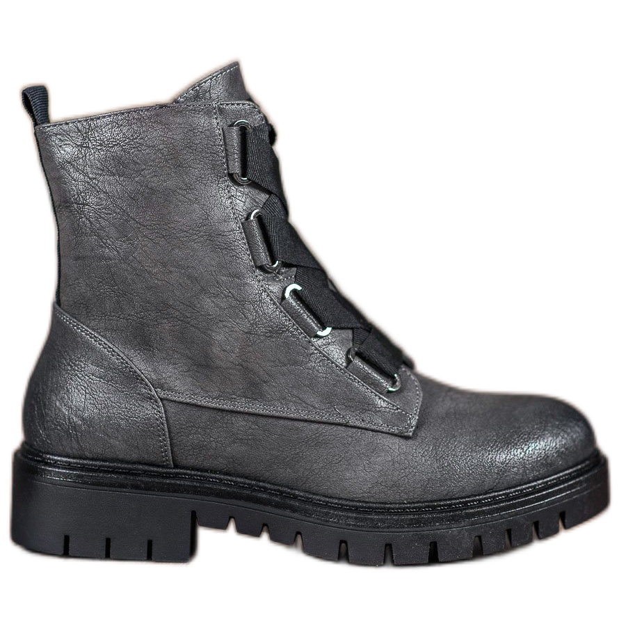 Dessa eleganta, grå arbetare passar perfekt in i den avslappnade stilen och är ett utmärkt val för varje dag. De matchar både jeans och klänningar, vilket gör att du kan skapa många fashionabla kombinationer. De har en rund tå, vilket ger extra komfort och rörelsefrihet.