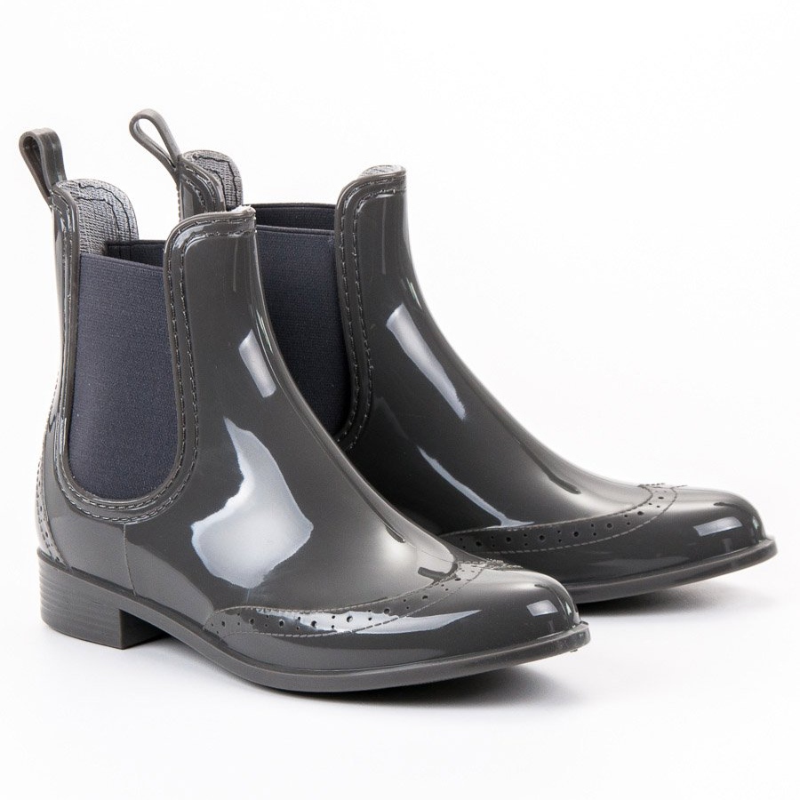 Upptäck de perfekta badbyxorna för kalla, regniga dagar - grå Kayla pull-on gummistövlar som kombinerar komfort och stil. Tack vare gummerade inlägg på sidorna är det ett rent nöje att sätta på dem. En liten 2,5 cm hög klack och en profilerad sula gör dem extremt bekväma och ger samtidigt en subtil karaktär till varje styling.