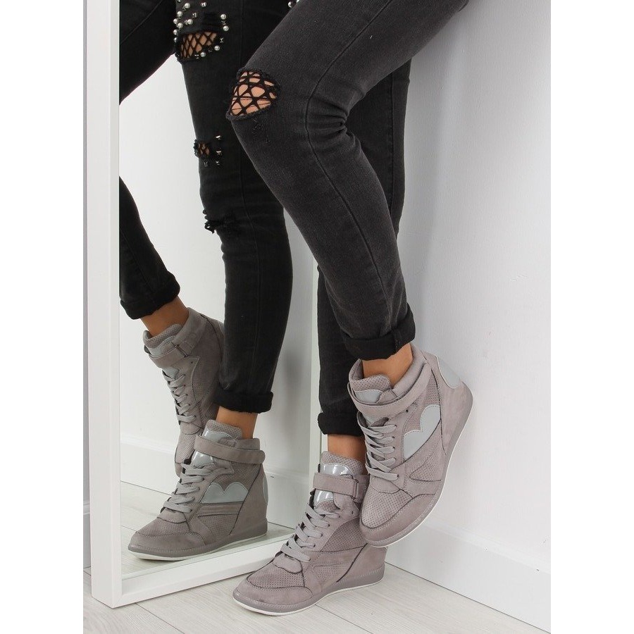 Grå sneakers för kvinnor 1542 grå är det perfekta valet för varje fashionabel kvinna som vill kombinera komfort med en unik stil. Dessa unika skor med en 6 cm hög dold kil kommer perfekt att framhäva varje figur och lägga till lätthet och elegans till den.