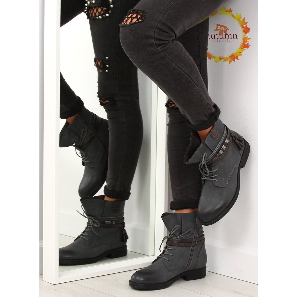 Vi presenterar BH52-KB ankelstövlar för kvinnor i en moderiktig grå nyans, som kombinerar stil, komfort och funktionalitet. Dessa eleganta skor är gjorda av ekologiskt läder av hög kvalitet och utmärks av sin unika matta finish och skuggade tår, vilket ger dem en unik karaktär.