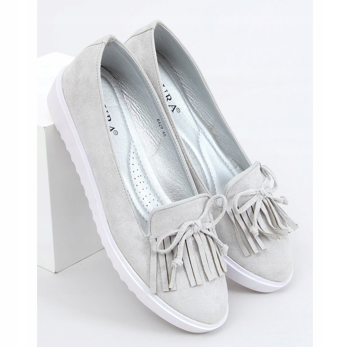 Upptäck extraordinär stil och komfort med grå tofs loafers (modell 6429 Grey). Dessa damskor, perfekta för dagligt bruk, är den perfekta kombinationen av elegans och modernitet. Tillverkade av ekologisk mocka med en vackert skimrande finish, kommer de att locka uppmärksamhet inte bara med sitt utseende, utan också med sitt noggranna utförande.