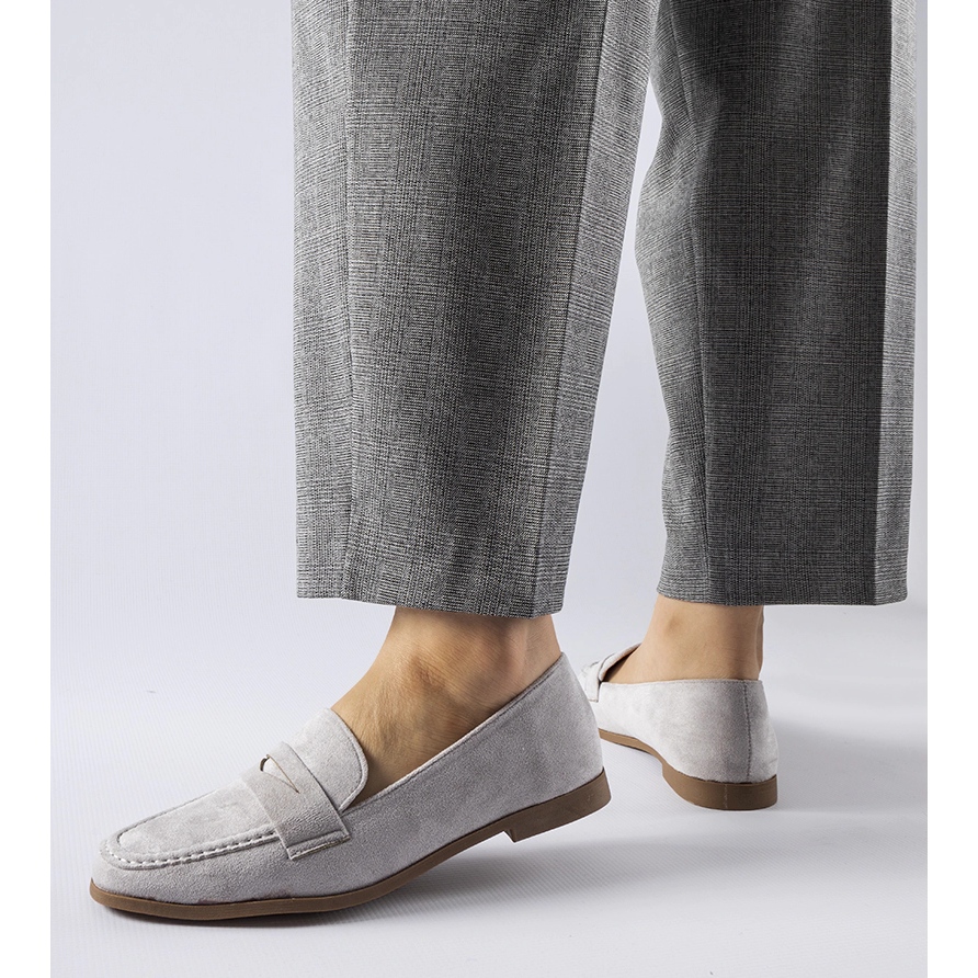 Upptäck elegansen och komforten hos grå Medford loafers i ekomocka. Tillverkade av material av högsta kvalitet, dessa skor kombinerar ett lyxigt utseende och praktisk användning. Eko-mocka ger dem en unik karaktär, och gummisulan ger utmärkt grepp och komfort vid dagligt bruk.