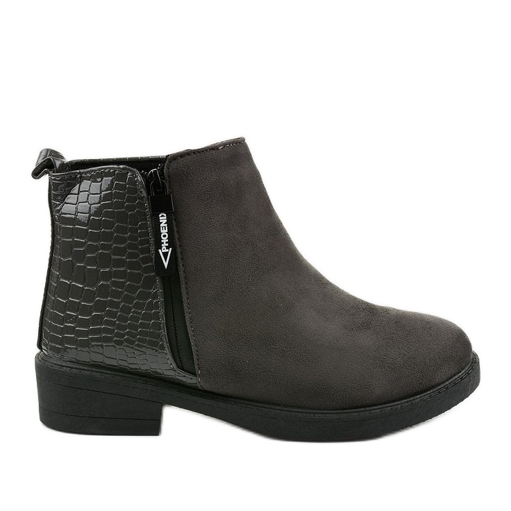 Genesario grå platta stövlar i mocka är ett perfekt val för kvinnor som värdesätter elegans och komfort. Dessa ankelboots är gjorda av miljövänligt mockaläder och kombinerar modern design med hållbarhet. Ovandelens baksida och sidor är dekorerade med ekologiskt patentläder med subtil ormprägling, vilket ger en unik karaktär.