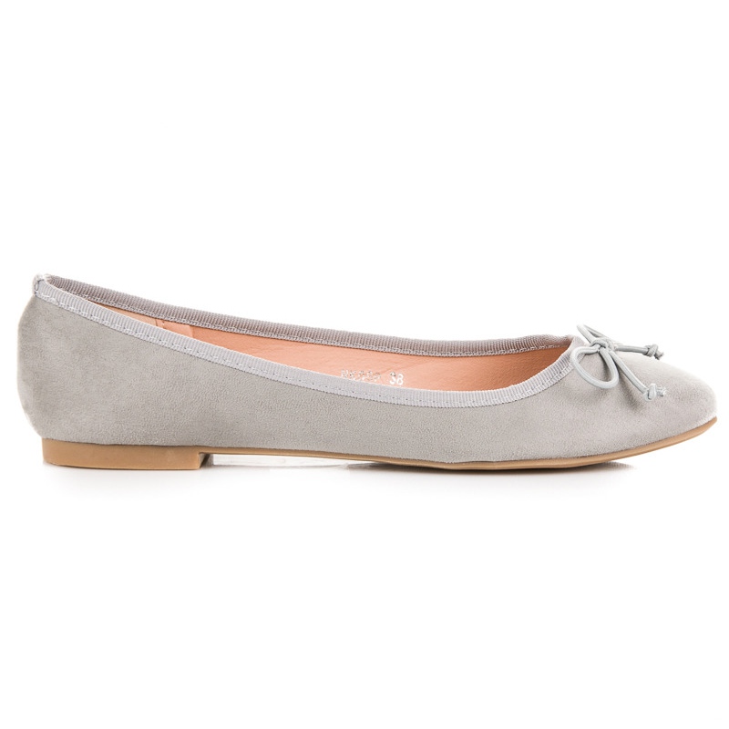 I nyanser av grått och silver passar dessa balettlägenheter perfekt in i vår-sommartrender, och deras universella färg gör att de kan kombineras med många stilar, både eleganta och mer avslappnade. Klackhöjden på endast 1 cm gör ballerinaskorna extremt bekväma, perfekta för aktiva kvinnor som inte ger upp ett moderiktigt utseende.