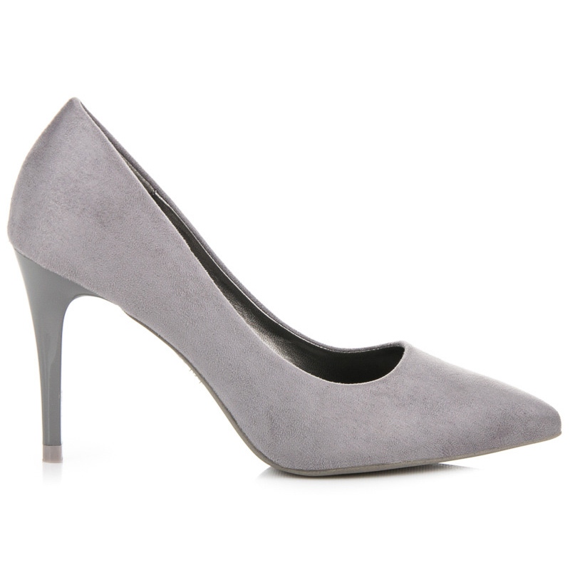 Klackhöjden på 9,5 cm tillför elegans och framhäver figuren, vilket gör dem till ett perfekt komplement till alla stylingar. Den grå färgen och avsaknaden av ett mönster gör dessa höga klackar universella och matchar både klänningar och byxor. Välj våra grå mockaklackar och lägg till en lyxig touch till din garderob!