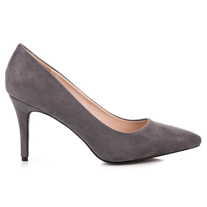 Upptäck elegans och stil med gråa Milaya höga klackar. Dessa mockapumps är ett perfekt val för varje kvinna som vill känna sig unik och självsäker. Klackhöjden på 10 cm tillför smalhet till siluetten och säkerställer samtidigt bärkomfort tack vare den perfekt profilerade innersulan av ekologiskt läder.