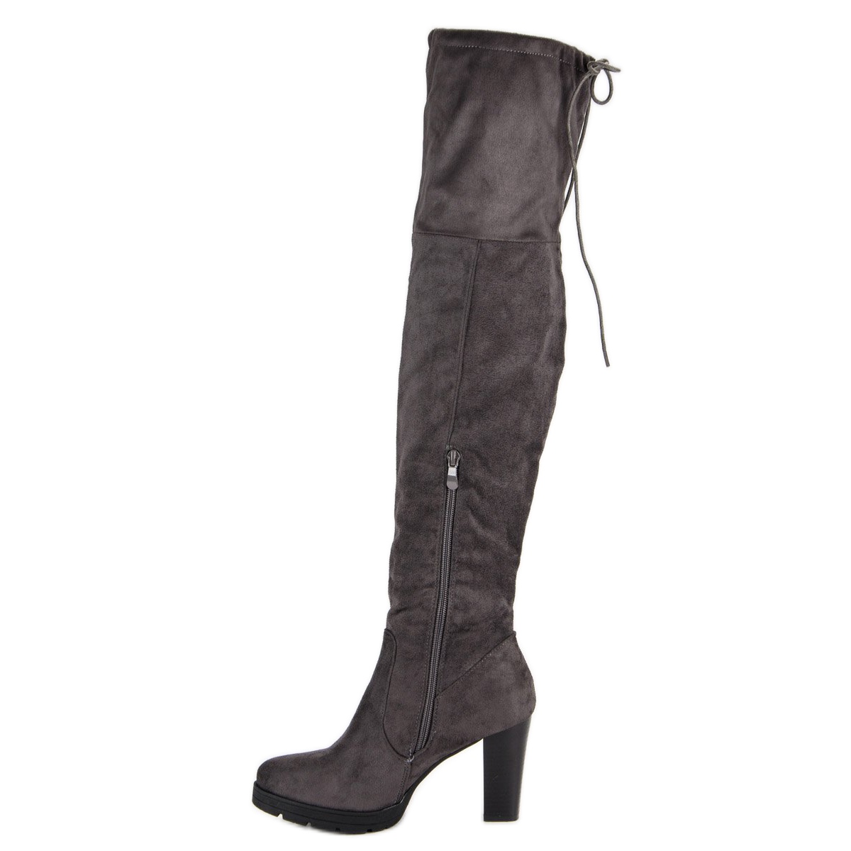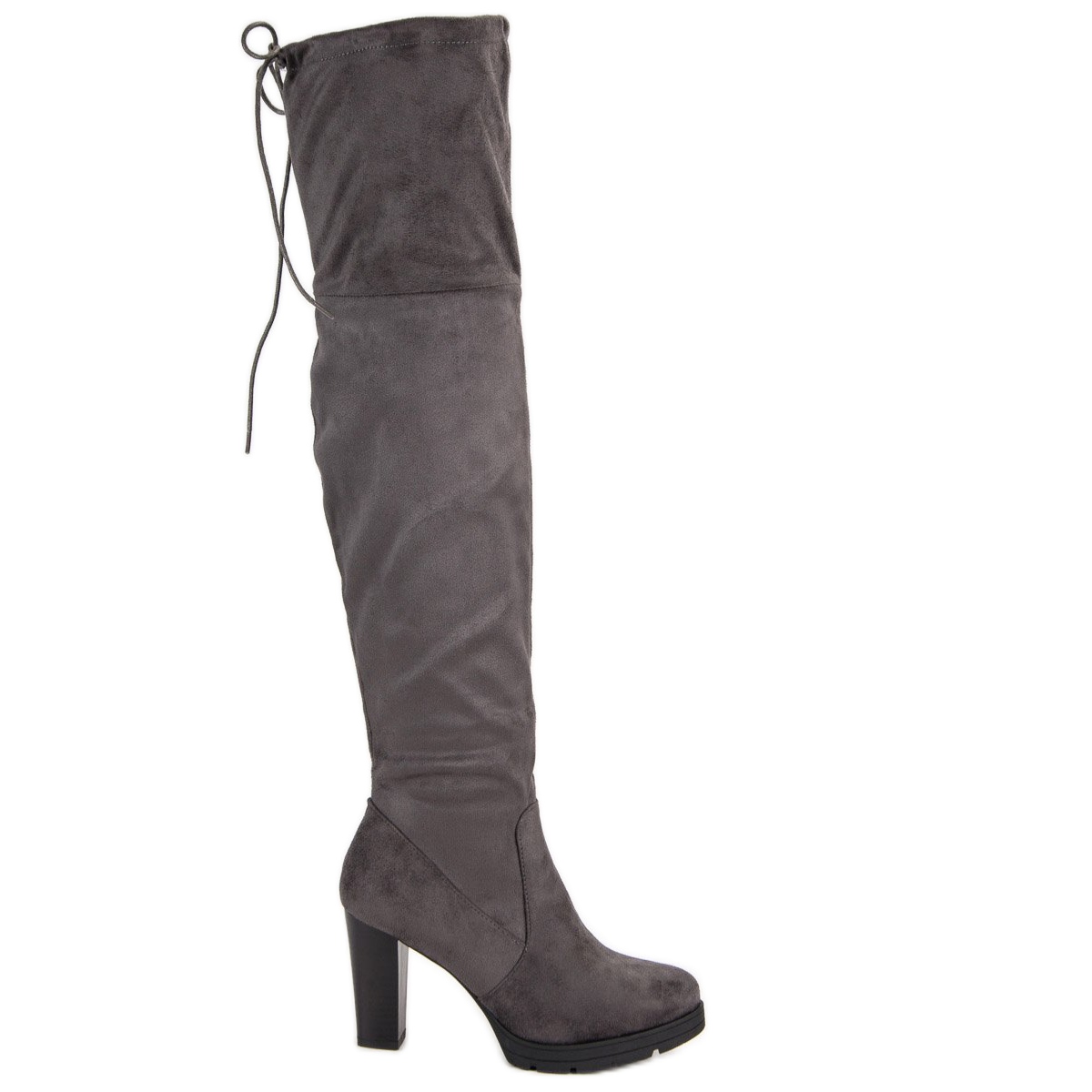 Upptäck elegans och stil med Seastar musketörer i en nyans av grått! Dessa höga, klassiska stilettskor är det perfekta valet för kvinnor som vill kombinera komfort med en moderiktig look. Tillverkade av ekologisk mocka, de kännetecknas inte bara av attraktiv design, utan också av funktionalitet. Deras höga ovandel, som når över knät, skyddar effektivt benen mot kyla och fukt, vilket gör dem till ett utmärkt val för kalla dagar.