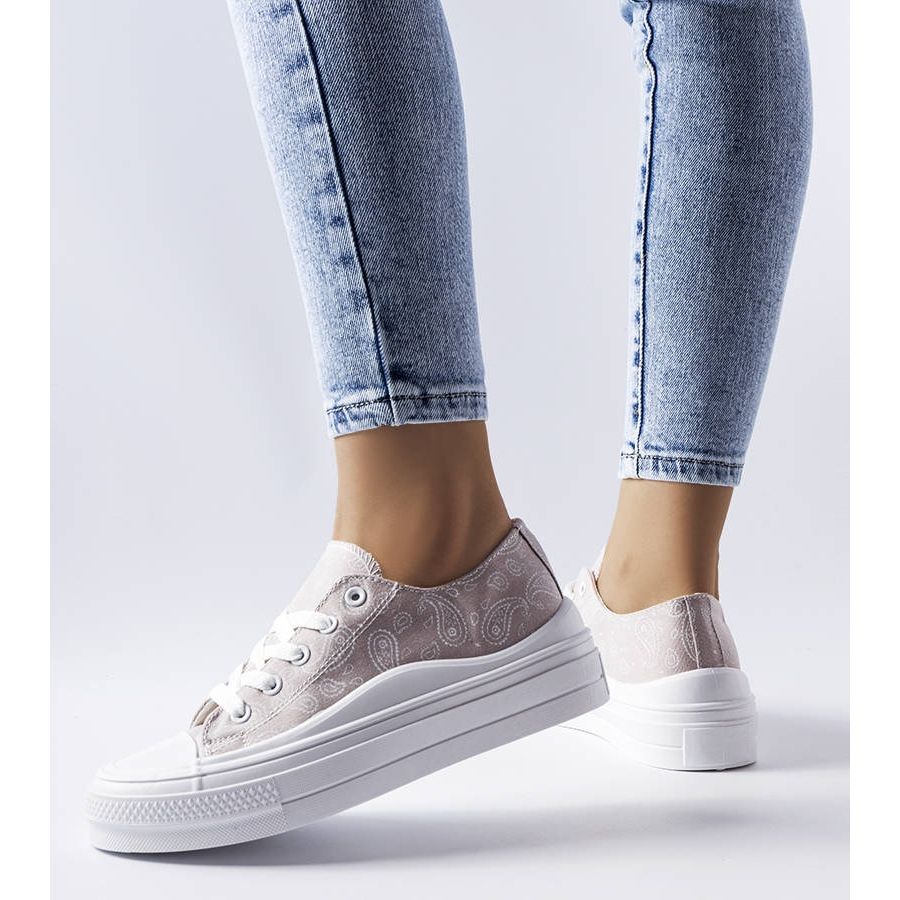 Den runda tån, förstärkt med ett gummiinlägg, garanterar hållbarhet och skydd, och den ankellånga ovandelen, dekorerad med ömtåliga sömmar, ger karaktär. Sneakersna är monterade på en tjock, 4,5 cm sula, vilket inte bara ser bra ut, utan också ökar komforten när du går.