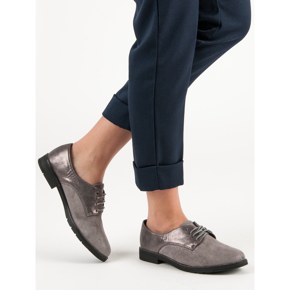 Skorna har en platt klack med en höjd på 2,5 cm, vilket garanterar komforten att använda hela dagen. Plastsulan med slitbana garanterar bra grepp, vilket är viktigt vid vardagsaktiviteter. Den runda tån och snörning ger dem en klassisk karaktär och möjliggör samtidigt enkel anpassning till foten.