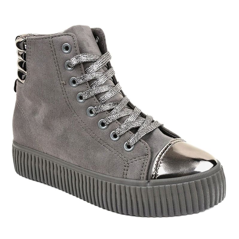Vi presenterar grå TL-53 plattformssneakers för kvinnor, som kombinerar modern design med exceptionell funktionalitet. Dessa sneakers är gjorda av ekologiskt läder av hög kvalitet och kännetecknas av en solid konstruktion och en attraktiv, minimalistisk look, perfekt för många stilar.