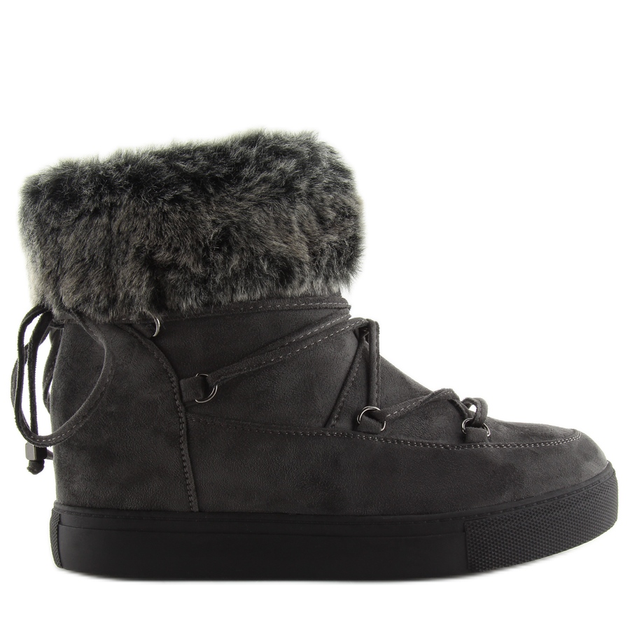 Grå snöstövlar B7582 är ett idealiskt förslag för alla kvinnor som vill kombinera stil med funktionalitet på vinterdagar. Dessa unika snökängor utmärks av sin eleganta grå färg och iögonfallande päls som påminner om kaninpäls, vilket ger helheten en unik karaktär.