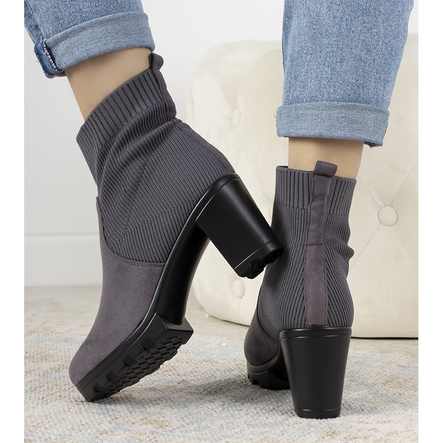 Upptäck en ny dimension av elegans och komfort med grå Soria ankelboots, som säkerligen kommer att berika din skokollektion! Tack vare det enkla snittet och ovandelen i sockstil anpassar sig denna modell perfekt till formen på benen, vilket ger maximal bärkomfort.