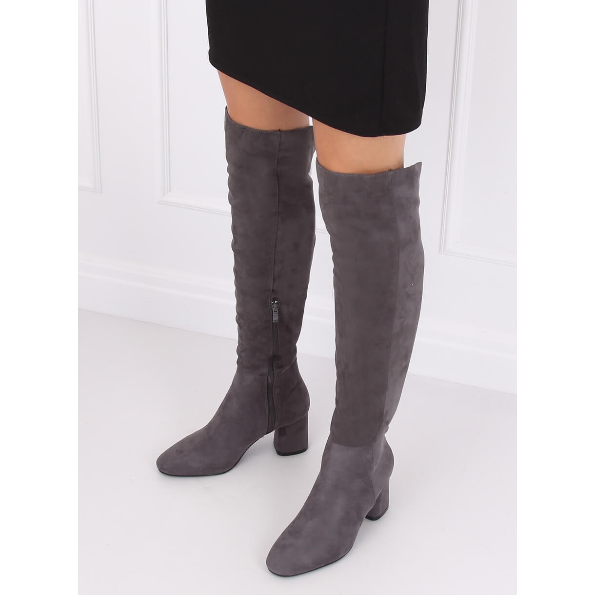 Vi presenterar högklackade musketörer i en elegant grå nyans - modell YQ215 Grå. Dessa damstövlar kombinerar ett klassiskt snitt och en modern stil, perfekt matchande aktuella trender. Den höga övre delen över knäet framhäver benens smalhet, och de rundade tårna ger subtilitet.